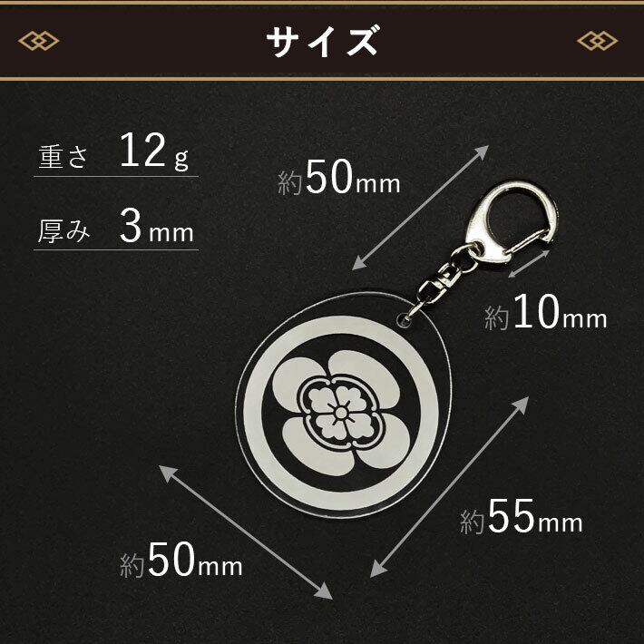 伝統的な家紋を刻印したキーホルダー。