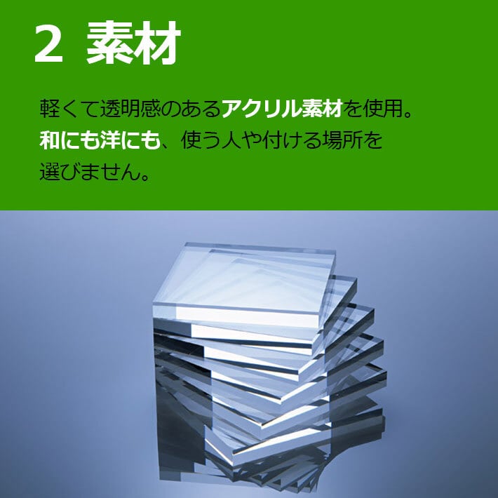 透明感のあるアクリルに繊細で美しい家紋が映え、和洋を問わずどんな場面にもマッチします。