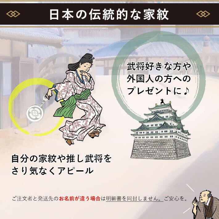 伝統的な家紋を刻印したキーホルダー。