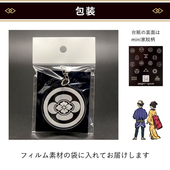 伝統的な家紋を刻印したキーホルダー。