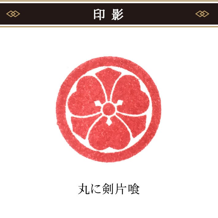 丸に剣片喰(まるにけんかたばみ)の家紋を、きれいに押せるゴム印です。