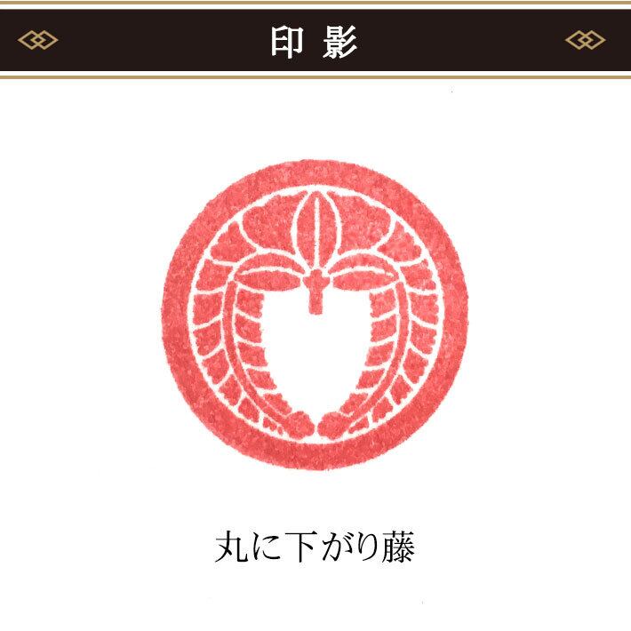 丸に下がり藤(まるにさがりふじ)の家紋を、きれいに押せるゴム印です。