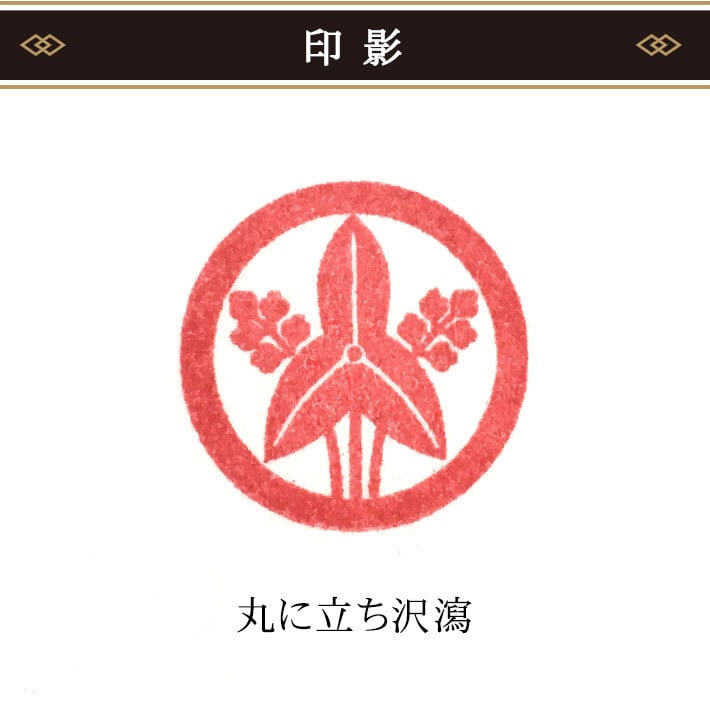丸に立ち沢瀉(まるにたちおもだか)の家紋を、きれいに押せるゴム印です。