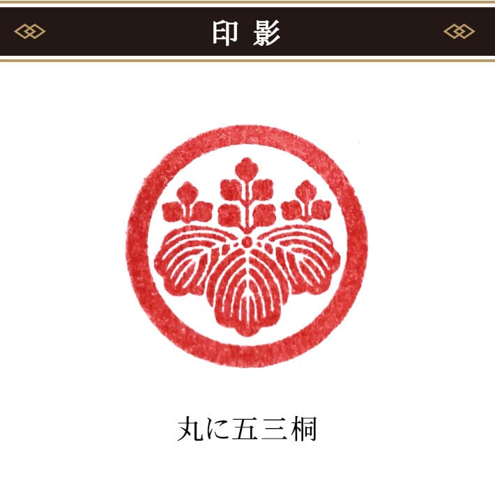 丸に五三桐(まるにごさんきり)の家紋を、きれいに押せるゴム印です。